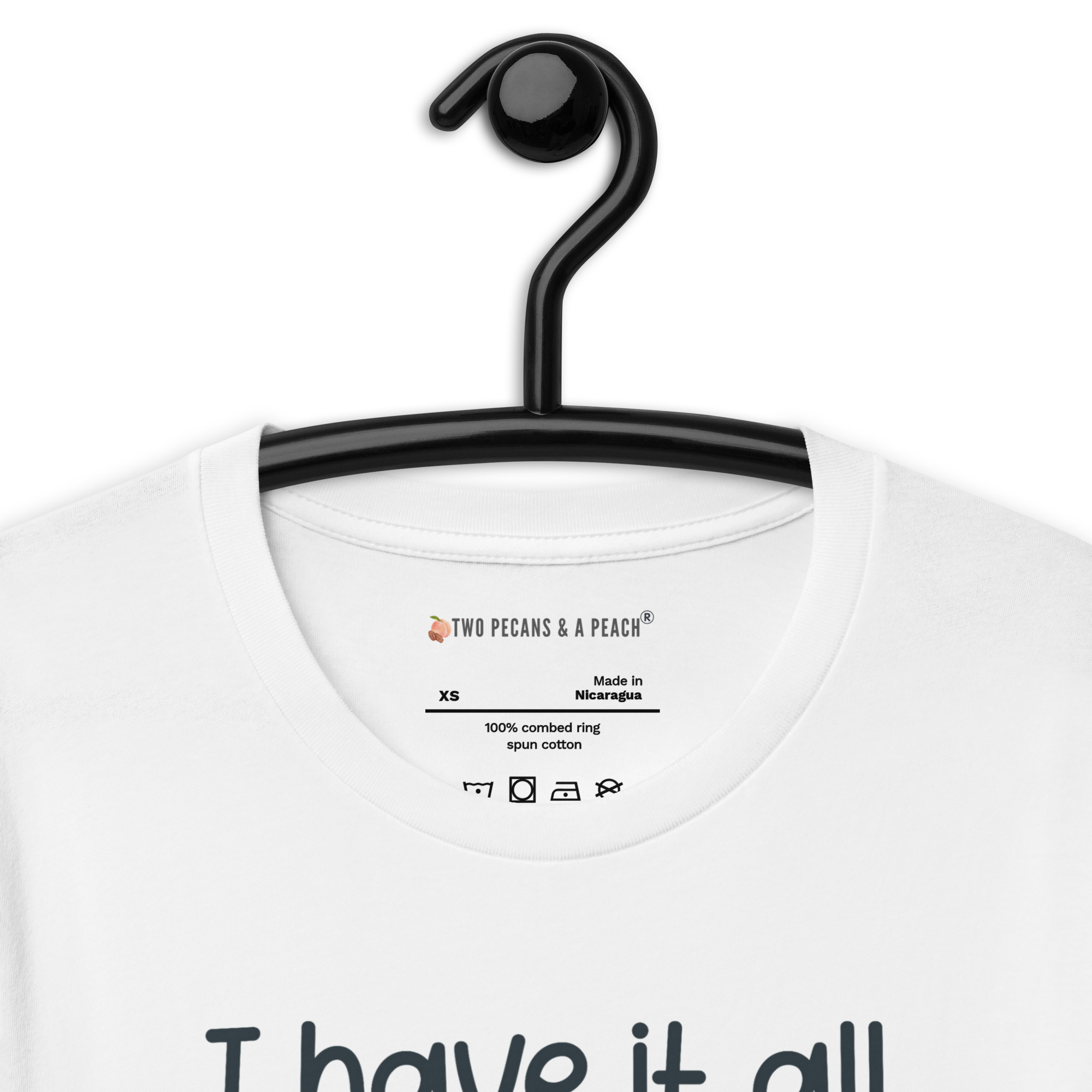 - Bold peachy lettering that pops against black fabric